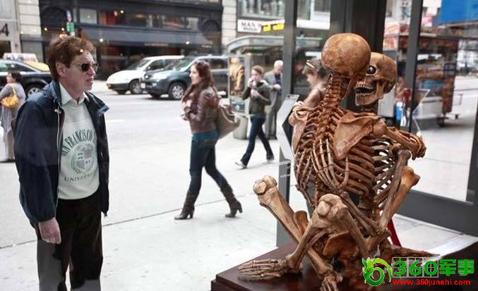 这些骷髅作品在纽约引发轰动,以各种挑衅性性姿态冲击着纽约人。它们是由法国设计师JeanMarc-Laroche创作的,在第五大道进行展览。雕塑完全由树脂做成。
